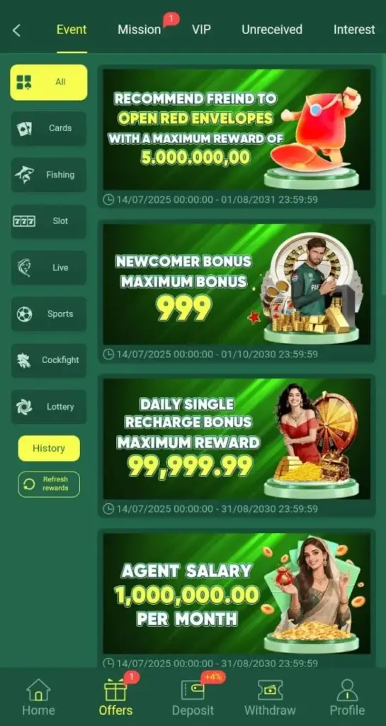golo777 Game offers deposit bonuses from time to time. This means that when you add money through your Easypaisa or JazzCash wallet, the app may give you extra credits based on your deposit amount.