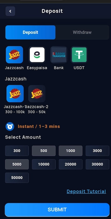- Deposit PKR 500 → Get extra promotional credits