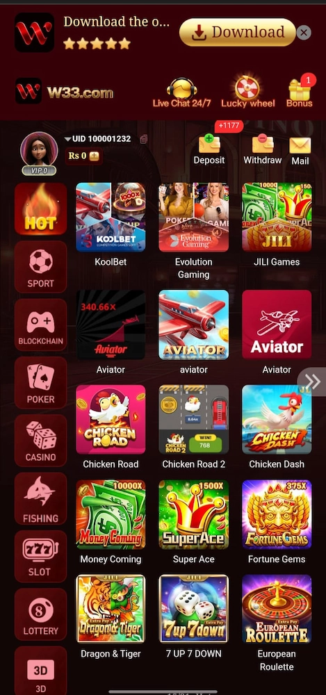 W33 Game is completely free to download on mobile devices. Users do not need to pay any installation fee. They can install the app, register, and explore the platform immediately. This makes it accessible for a large audience. Free downloads help the app reach more players across Pakistan.